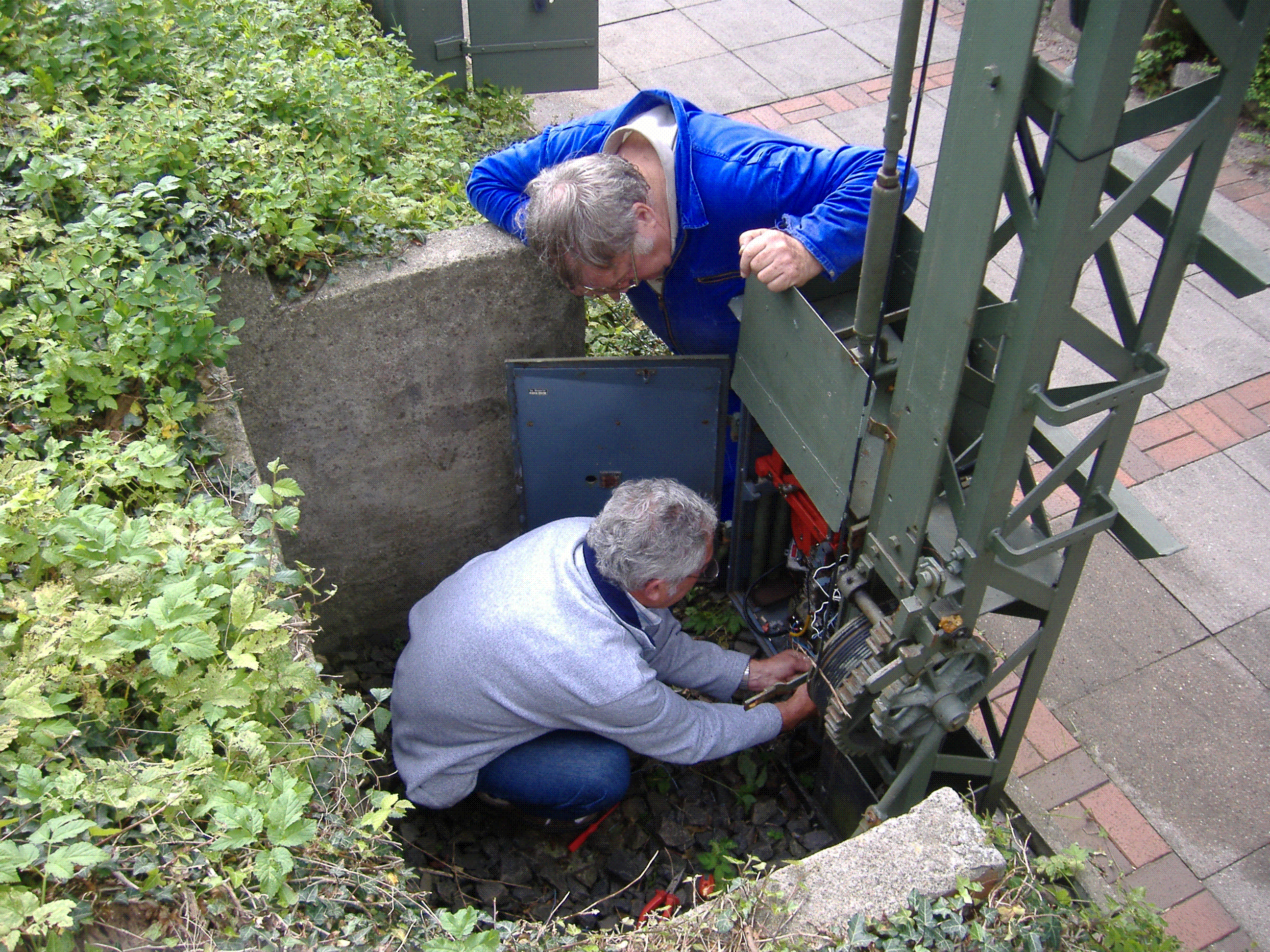 Arbeiten am Signalantrieb durch Karl-Heinz Jüdes und Erwin Michaelsen.