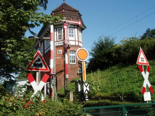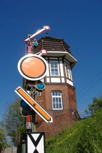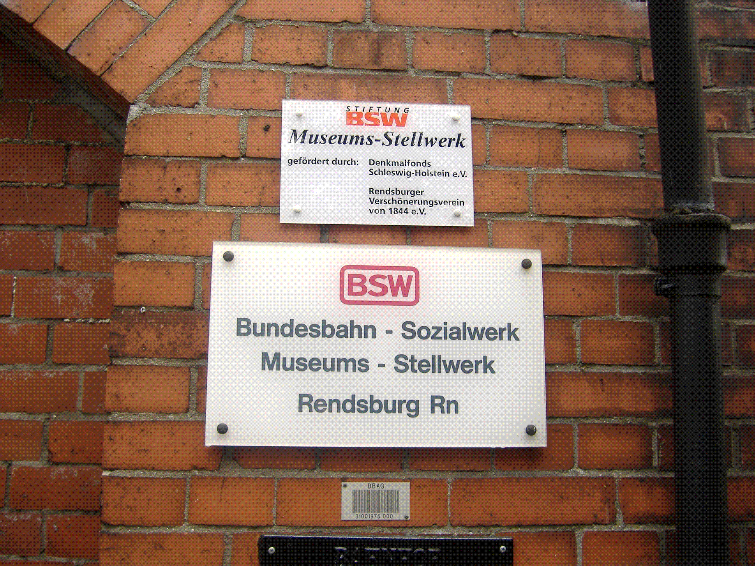 Das Museumsstellwerk Rendsburg unweit des Bahnhofs Rendsburg. Zu erreichen vom Gehweg aus.