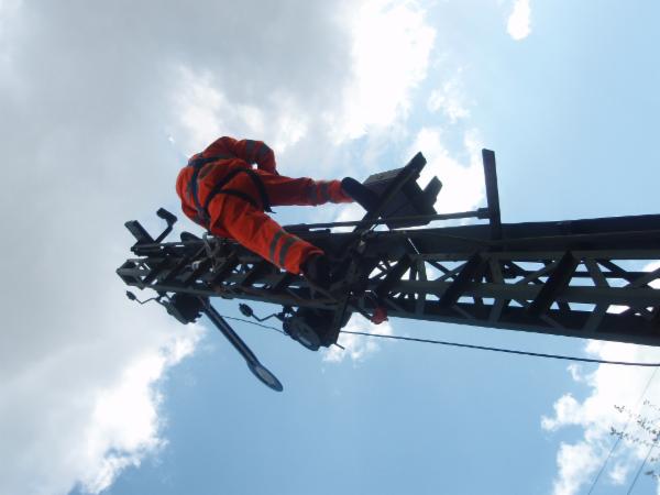 Das Hauptsignal braucht auch Wartung - unser Kollege K.-H Jüdes beim Fettpressen.